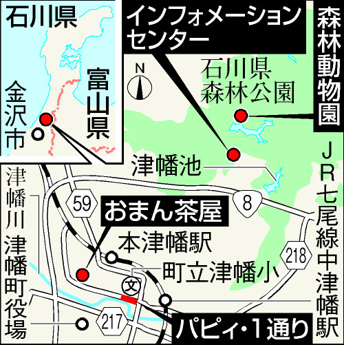 忠犬伝説で犬が決壊を知らせた「津幡池」は、石川県森林公園(インフォメーションセンターは津幡町津幡エの14、076・288・6449)内の遊歩道から望める。公園で休日を過ごす家族連れには、無料で入れる「森林動物園」が人気。サルやシカ、リスなどののんびりした暮らしぶりをのぞくことができる。