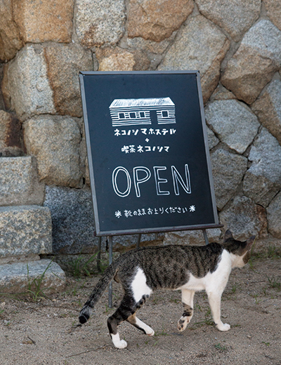 もともと猫が大好きだったという村上さんご夫婦。ここで出会った猫たちにもインスピレーションを強く受けたという。「この島の猫たちは〝猫がもつ本来の姿〟だと感じました。猫と人が共存し ながら生きている。そんなのびのびとした猫たちにも魅了されました」