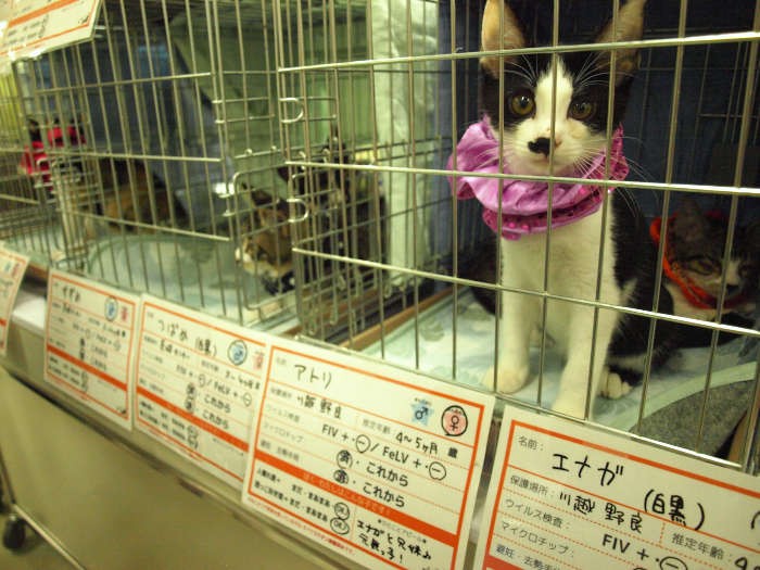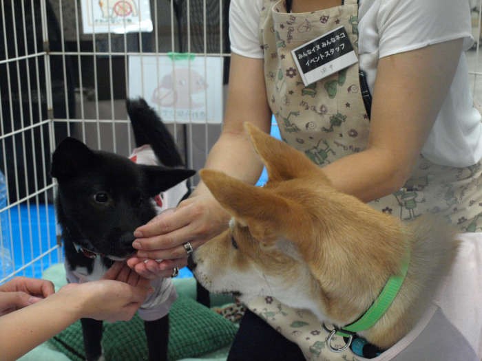 15日は、保護猫カフェ「ねこかつ」と、ボランティアグループ「おーあみ避難所」が主催し、猫約50匹、犬約7匹が紹介された。