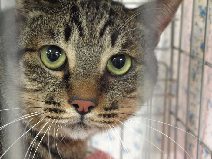 会場には、猫が入ったケージがずらりとならべられた。その一つ一つに、名前や性別ほか、「やんちゃ」「甘えん坊」といった性格などが書かれたカードが添えられた。訪れた人たちがケージの間を歩き、「かわいいね」と話しながら猫たちの顔をそっとのぞき込むと、主催した団体のスタッフが「元気がいい子なんですよ」などと説明していた。