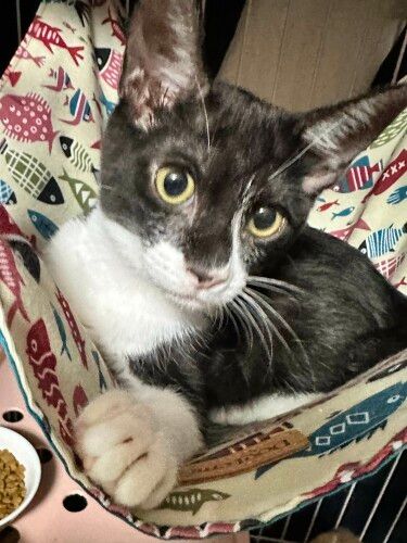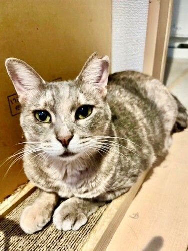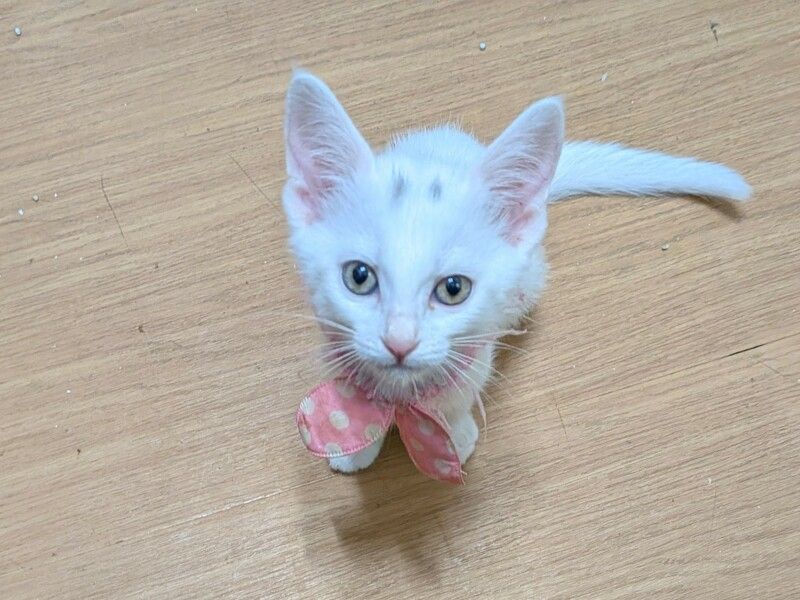 紹介文:とても可愛いお顔の女の子です。最近すごく甘えん坊になってきて、ゴロゴロいいながらスリスリしてくれます。おしりトントンとじゃらし遊びが大好き。