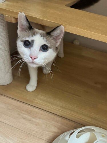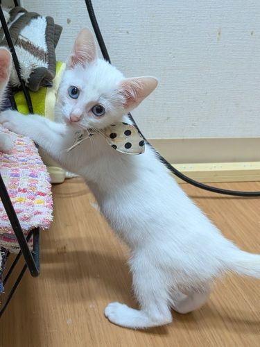 紹介文:スリスリが止まらない、とても甘えん坊です。じゃらし遊びも好きです。ブルーアイがキレイな子です。