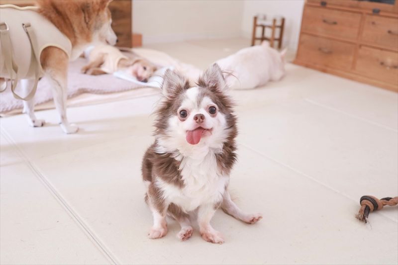 紹介文:基本的にはマイペースな甘えん坊さんですが、少し臆病です。初めて経験することや慣れていないこと、初対面の人などに緊張してしまいますが、慣れると天真らんまんな甘えんぼさんです。ボールやおもちゃを投げて、持ってくる遊びが大好きです。