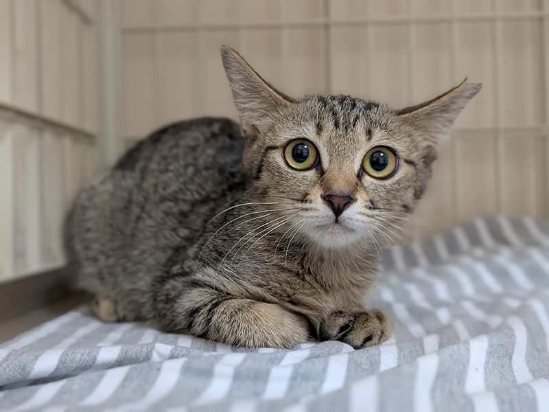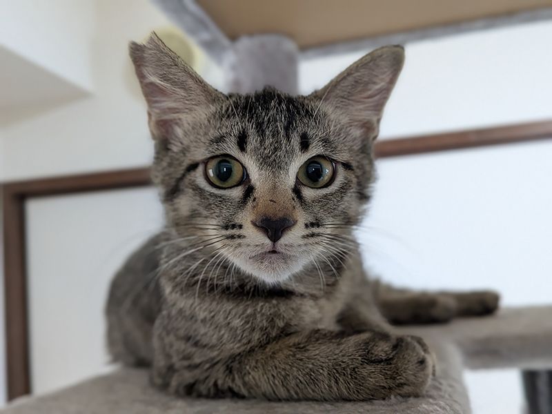 紹介文:太陽と兄妹です。とある市場で母猫や兄妹と暮らしていましたが、車通りも多く過酷な環境のため兄妹と共に保護。警戒心が強めで、隠れて過ごしたり、近づくと逃げてしまうことが多い室内野良猫状態ですが、少しずつ近づける距離が縮まっているように思います。しかし、オヤツの時間になるとすぐ後ろに来ていたり……と、なかなかのツンデレキャラがとってもお茶目な千夏ちゃんです。本当は甘えんぼうな気配もするので、安心して甘えられる素敵な家族が見つかることを願っています。