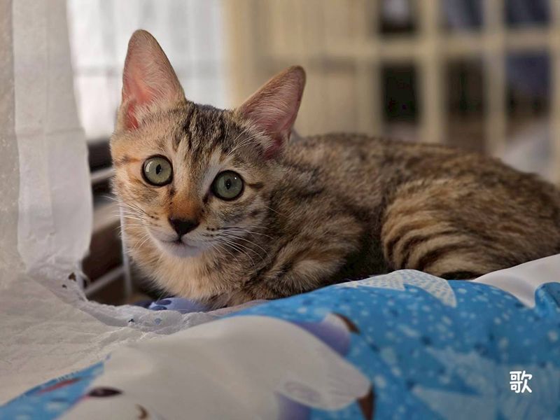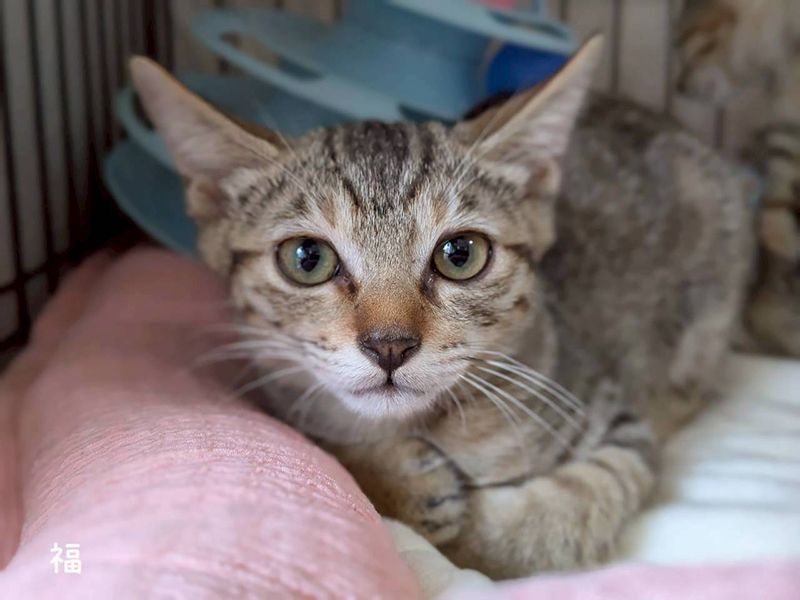 紹介文:真夏の暑い中、細い路地で、生後2カ月ほどの小さな体で一生懸命お外で過ごしていました! 歌・福と一緒に保護しました。保護当初はびびりでしたが、今ではなでられるとゴロゴロのどを鳴らして甘えてくれる隠れ甘えん坊なとってもキュートな女の子です!! 兄妹ともとっても仲良く一緒に寝ています。ご飯もよく食べて元気に過ごしています!