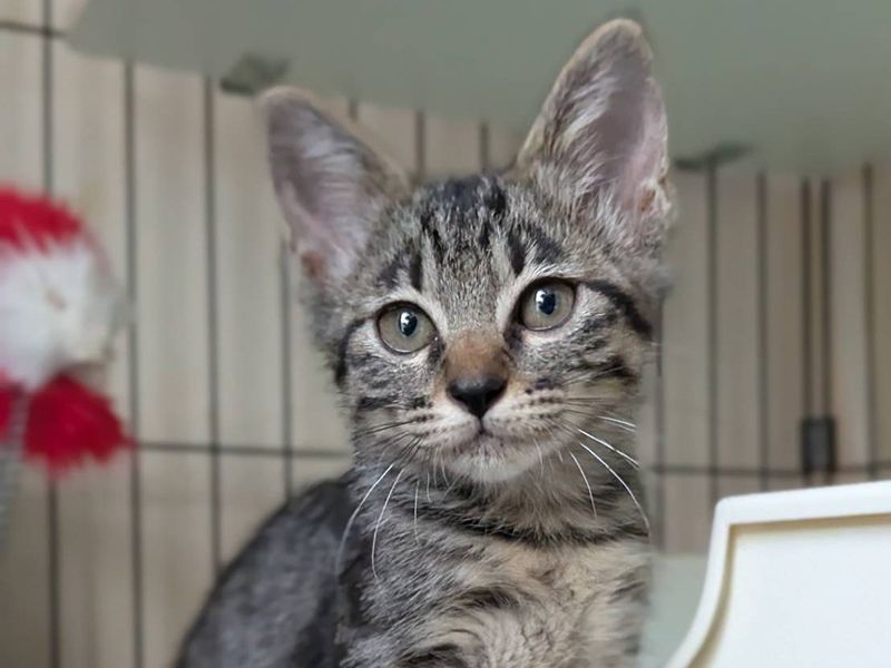 紹介文:千夏と兄妹です。とある市場で母猫や兄妹と暮らしていましたが、車通りも多く過酷な環境のため兄妹と共に保護。警戒心は強めですが、タイミングによっては抱っこもできるようになってきています。また、じゃらし遊びが大好きで、キラキラしたお目々で催促してきます。そして他の子たちと元気に走り回っています。パワーがあり、手脚も大きいです。なので、でっかく育つかもしれませんね! そんな太陽くんと思う存分遊んでくれる、素敵な家族が見つかりますように。